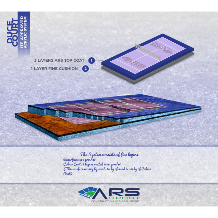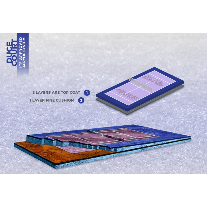 Ace court is abasic and economic Acrylic Tennis and outdoor mmulti-purpose surface suitable for Community use and entrylevel tennis courts. Duce Court provides a fast and durable playing surace for tennis, Basketball, volleyball, handball, batminto players.